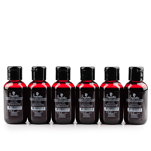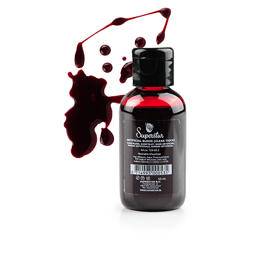 La Superstar Fake Blood Clear Thick es una sangre artificial hermosa y clara. Es bastante espesa y se mantiene bien en el lugar de aplicación sin manchar y se puede usar para hacer heridas con sangre. La sangre se coagula. Al combinar sangre clara y oscura, crea un resultado hermoso. Ideal para heridas y Halloween.