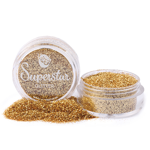 Superstar Glitter es imprescindible en tu kit de pintura facial. Puede agregar acentos brillantes de una manera rápida y fácil. El brillo es adecuado tanto para la piel como para el cabello. La purpurina tiene un efecto holográfico y se puede aplicar directamente sobre la piel.