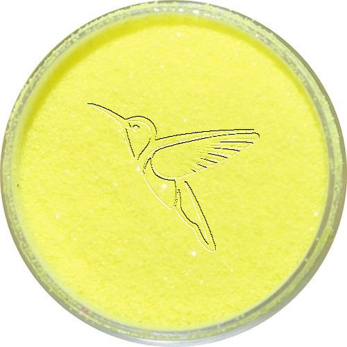 Purpurina color UV amarillo 20 g en una bolsita de plástico.