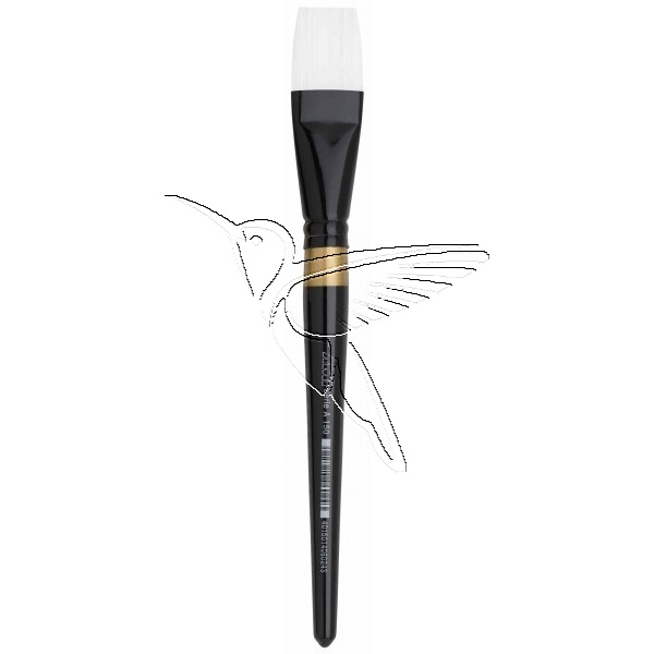 Pincel plano nº 1. Pincel de pelo sintético blanco, con una abrazadera sin costuras de color plateado y un mango corto lacado en negro.